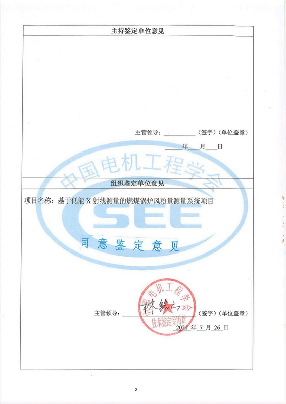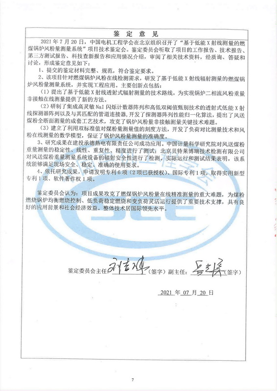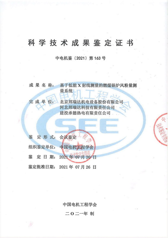 2021年7月20日,中國電機(jī)工程學(xué)會在北京組織召開了“基于低能X射線測量的燃煤鍋爐風(fēng)粉量測量系統(tǒng)”項目技術(shù)鑒定會。
